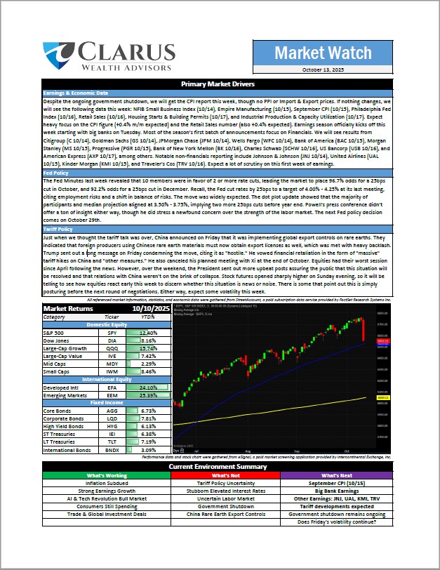 Clarus Wealth Advisors Market Watch October 13, 2025